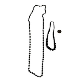 | Conditie | Broche met één steen ontbrekend, colliers in goede staat |
