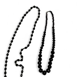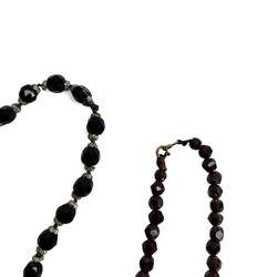 | Omschrijving | Lot diverse sieraden: een lang gitten collier, een granatencollier met kralen in oplopend formaat en een 19e eeuwse vergulde broche, bezet met diverse stenen, o.a. granaat |