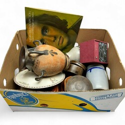 | Omschrijving | Lot diverse. Bestaande uit keramiek, twee houten en blikken dekseldozen, keulse anchovis potten etc. |