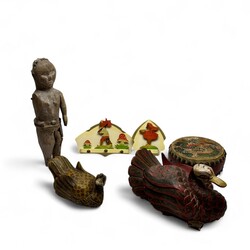 | Omschrijving | Lot diversen. Bestaande uit houten Indische sculpturen, houten kinderkapstok, etc. |