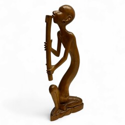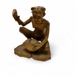 | Omschrijving | Lot diversen. Twee Indonesische houtsnijwerken en een antieke messing offerschaal. |
