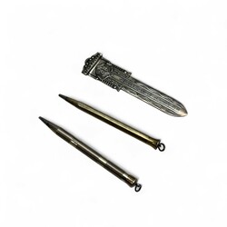 | Omschrijving | Lot met twee antieke foto albums, schildpad met zilveren brillenetui, glazen strooiers met zilveren doppen, twee zilveren vulpotloden en een onderdeel van een horloge ketting |