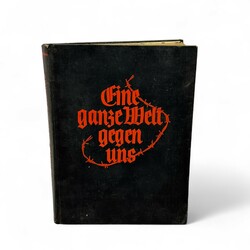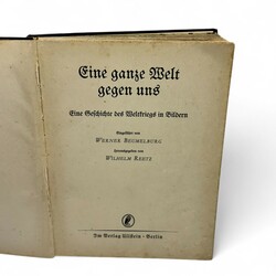| Omschrijving | Lot van 2 Duitse boeken met het thema WOII, één is een fotoboek genaamd 'Eine ganze welt gegen uns', het andere boek is een Duits boek over WOII (zonder kaft), ook zit er een oude kaart van de Balkan bij. |