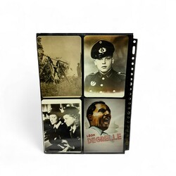 | Omschrijving | Lot van 2 fotomappen, in de mappen zitten foto's met het thema WOII, voornamelijk Nederland, o.a. vliegtuigen, soldaten en tekeningen. Ook kaarten van Hitler, o.a. met tekst '13. Marz 1938 Ein volk Ein Reich Ein Fuhrer' en enkele Eerste Wereldoorlog. |