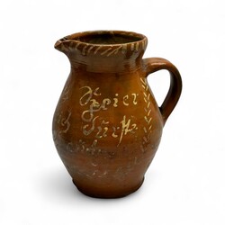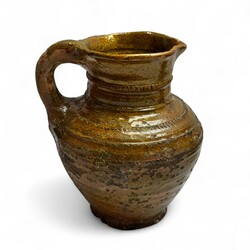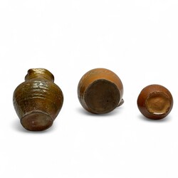 | Omschrijving | Lot van drie bruin aardewerken kruiken, o.a. één 17e eeuws oliekannetje met slibdecor en een kruik met slibdecor, gedateerd 1897 |
