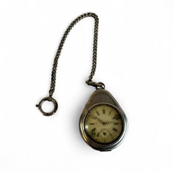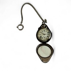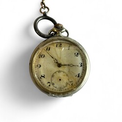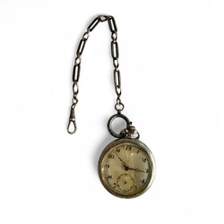 | Omschrijving | Lot van drie zakhorloges, waaronder een onedel exemplaar aan niëllo zilveren zakhorlogeketting, en een derde gehalte (800/1000) zilveren exemplaar. Met daarbij een polshorloge, gemerkt ‘Orson’, jaren ‘50 op stalen band. |