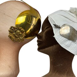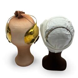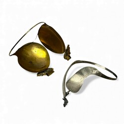 | Omschrijving | Lot van twee oorijzers: één verguld koperen exemplaar met twee bloemvormige knoppen, en één Urker model, zilver |