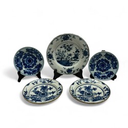 | Kavel | 2900. Lot van vijf 18e eeuwse Delftse bordjes |