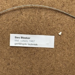 | Omschrijving | Gemengde techniek op papier, titel 'ruiters'. Rechtsonder gesigneerd Sies Bleeker (Heerenveen 1941-2015) gedateerd 1967. |