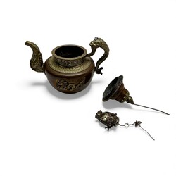 | Kavel | 2451. Tibetaanse koperen ketel met verzilverde rand en verzilverde parfumflacon |