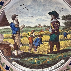 | Omschrijving | Een vroeg 20e eeuws polychroom aardewerken bord met tekst |
