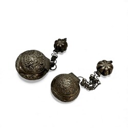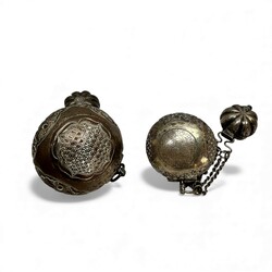 | Omschrijving | Lot van twee antieke 19e of vroeg 20e eeuwse zilveren of verzilverde rijk bewerkte Indische sirih- of beteldoosjes. |