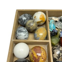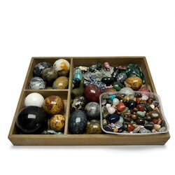 | Omschrijving | Een 20e eeuwse verzameling mineralen en halfedelstenen, o.a. bollen, eivormige objecten en dierfiguren. |