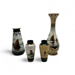 | Kavel | 2703. Vier vroeg 20e eeuwse vazen met landschapsdecor, Zuid-Holland |