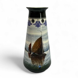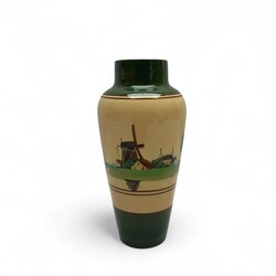 | Omschrijving | Lot van vier vroeg 20e eeuwse aardewerken vazen met landschapsdecor, allen gemerkt voor plateelbakkerij Zuid-Holland, Gouda, periode 1910-1920, waaronder twee met decor ‘Paysage’. |