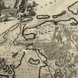 | Omschrijving | Een antieke 18e eeuwse Friese kaart, ‘Descriptio Frisiae liberae inter Kinnemum et Amisiam’, Friesland tussen Kennemerland en Eems, na de terugkeer van de Franken tot aan de overstromingen van de dertiende eeuw. Kaart uit ‘Tooneel der Vereen. Nederl. en onderhoorige landschappen’, uitgave F. Halma. Leeuwarden, 1725. |