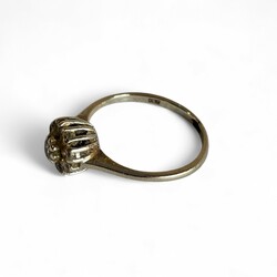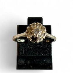 | Omschrijving | Een 20e eeuwse 14 karaats (585/1000) witgouden entouragering, bezet met acht diamantjes (één ontbreekt). Aan de binnenzijde gemerkt met eikenblaadje en meesterteken ‘A.Sp’ |