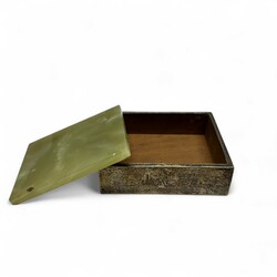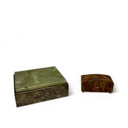 | Omschrijving | Een 1e gehalte (925/1000) zilveren sigarettendoosje met een onyx deksel en een klein schildpad dekseldoosje op pootjes. |
