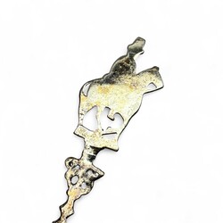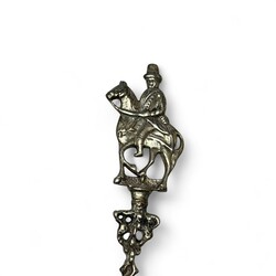 | Kavel | 2474. Zilveren geboortelepel, ruiter te paard, zonder inscriptie |