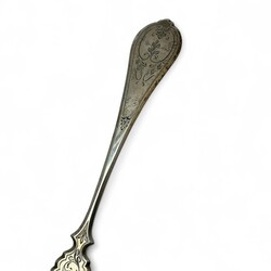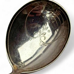 | Omschrijving | Een antiek 19e eeuws tweede gehalte (835/1000) zilveren gembercouvert, rijk gegraveerd. Verso gekeurd met minervakopje, lopende leeuw, jaarletter X en meesterteken AK47 = wed. Adrianus Kuilenburg, Schoonhoven 1862 tot 1882. |