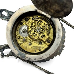 | Kavel | 2437. Zilveren zakhorlogekast met 18e eeuws uurwerk |