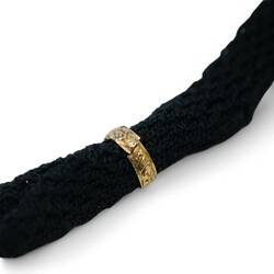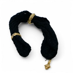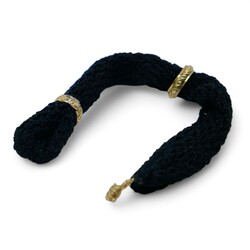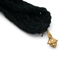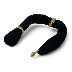 | Omschrijving | Een antiek 19e eeuws gebreid zwarten beursje met 14 karaats (585/1000) geelgouden applique. |