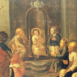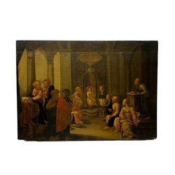 | Omschrijving | Schilderij, olieverf op paneel. Religieuze voorstelling. Ongesigneerd, Hollandse School 17e/18e eeuw. Verso briefje met oude toeschrijving, Leonaert Bramer. |