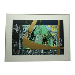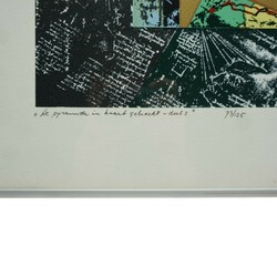 | Omschrijving | Zeefdruk op papier, ‘Pyramide in kaart gebracht’. Gesigneerd Jan Linders (1942-1996), gedateerd 1988. |