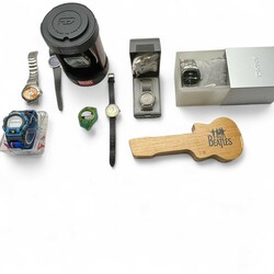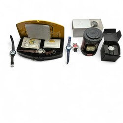 | Omschrijving | Lot horloges, diverse merken, o.a. Camel Trophy Challenger, designhorloge, Andre Richard/Pierre Junod, Diesel, DKNY, 2x Lorus en Gul |