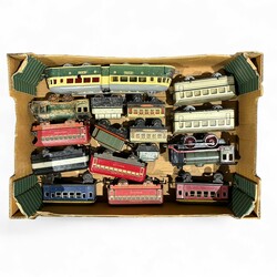 | Omschrijving | Lot diverse oude blikken wagens en locomotieven, waaronder een Marklin R900 locomotief. |
