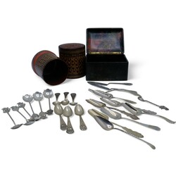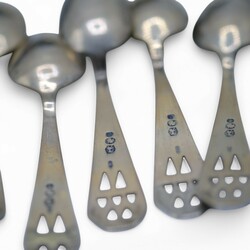 | Omschrijving | Lot divers zilveren schepwerk, o.a. zes Djokjazilveren lepeltjes, met Wayangpop, gemerkt ‘800’, zes Jugendstil lepeltjes, mr. G. Huisman, Amsterdam, 1927, zes suikerschepjes, twee Djokjazilveren botermesjes, twee losse lepeltjes en een vleesvorkjes. |