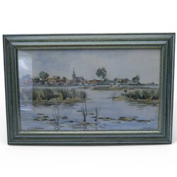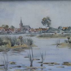 | Omschrijving | Aquarel op papier, 'gezicht op Eernewoude', rechtsonder gesigneerd Sjoerd de Vries (Franeker 1909 – Alkmaar 1996). |