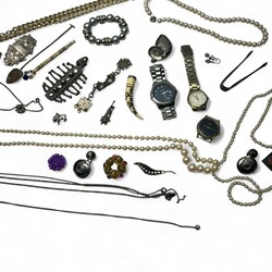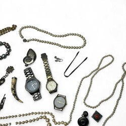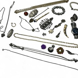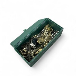 | Omschrijving | Een stoffen doosje gevuld met divers bijoux, waaronder zilver en twee horloges, Palerma en Pulsar |