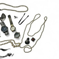 | Kavel | 2934. Stoffen kistje met bijoux en twee horloges |