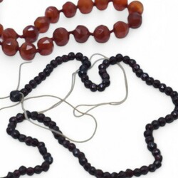 | Kavel | 2731. Twee carneolen en granaten snoer (3x) |