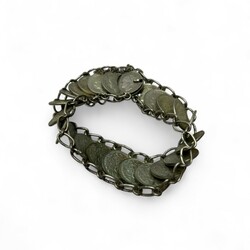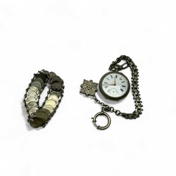 | Omschrijving | Lot divers: een zilveren armband gemaakt van zilveren dubbeltjes, Tweede Wereldoorlog (1941) en een nikkelen zakhorloge aan zakhorlogeketting, signet met hoefijzer en polostokken |