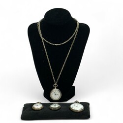 | Omschrijving | Lot diverse vroeg 20e eeuwse zilveren dameszakhorloges, waarvan één aan een zilveren jasseroncollier |