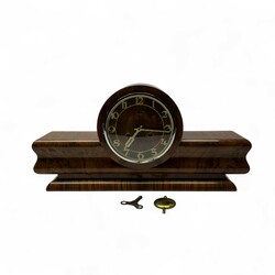 Een jaren ’30 art deco gefineerde pendule, met verchroomde rand.