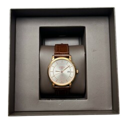 | Omschrijving | Een modern herenhorloge, Roamer Classic, ref. 709 856. Quartz uurwerk, roségoudkleurige kast en zilveren wijzerplaat met dagaanduiding. |