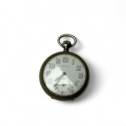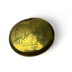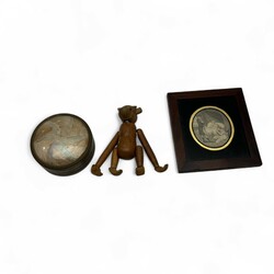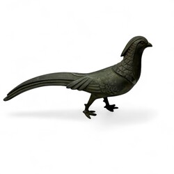 | Omschrijving | Lot diversen, waaronder een art deco sculptuur van een fazant (pootjes gelijmd), lijstje met 19e eeuwse kopergravure, Zenith zakhorloge, drie penningen, tabaksdoos gedateerd 1857, bodemvondst schaaltje, dekseldoosje gemerkt Peguy, en een 18e eeuws zilveren lepeltje. |