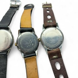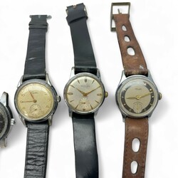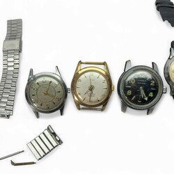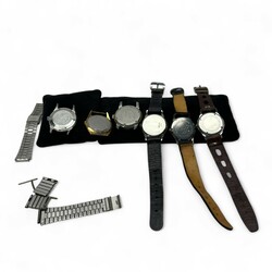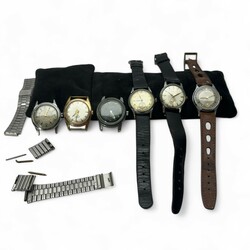 | Omschrijving | Lot met zes diverse mechanische opwind herenhorloges. Merken Remova, Kienzle, Plonguer etc. Waarvan drie aan lederen banden. |