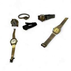 | Omschrijving | Lot van zes horloges, waaronder Bifora, Pierre Cardin en Certina Club 2000 verguld dameshorloge. Met daarbij een verguld wekkertje, Leader, en een stalen Zenith herenhorloge, handopwinder, met pie pan dial. |