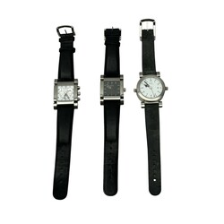 | Omschrijving | Lot van drie stalen Xemex horloges: Xemex offroad, dubbel horloge met zwarte en witte wijzerplaat, en twee Xemex Avenue horloges, ontwerp Ruedi Külling |
