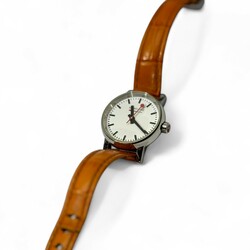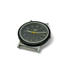 | Omschrijving | Lot van trwee dameshorloges: een Quartz dameshorloge op lederen band, gemerkt Mondaine, model MSE261101C, met garantiecertificaat. Met daarbij een Braun horloge, model AW10 (referentie 4 789), ontwerp Dieter Rams, zonder band. |