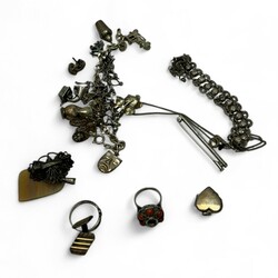 | Omschrijving | Lot diverse sieraden, waaronder een derde gehalte (800/1000) zilveren zakhorloge, met op de achterzijde voorstelling van een driemaster, een stel tweede gehalte (835/1000) zilveren manchetknopen, bedelarmbandje met tien bedels en diverse ringen. |