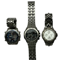 | Omschrijving | Lot van drie herenhorloges op stalen banden, Fossil, Pulsar en Citizen\ |