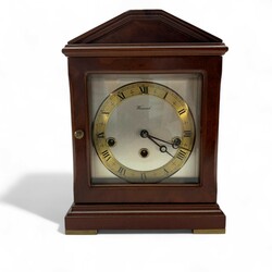 | Omschrijving | Een 20e eeuwse Warmink pendule in houten kast, met Kieninger Westminster uurwerk. |