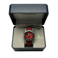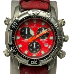 | Omschrijving | Een 20e eeuws herenhorloge, Festina. Chronograaf, stalen kast met rode wijzerplaat, op rode band. Met doosje en papieren. Ref. 6563. |