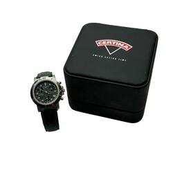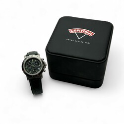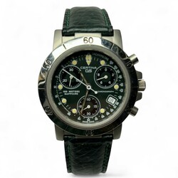 | Omschrijving | Een modern herenhorloge, Certina DS, referentie 7021 542 / 7121 42. Quartz uurwerk, stalen kast, op originele groen lederen band. Met Certina doosje en papierwerk. |
