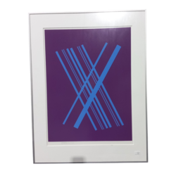 | Omschrijving | Een zeefdruk op papier. abstracht decor van lijnen in het blauw en paars. Postuum gesigneerd door de weduwe van Willem Hussem (1900-1974). Oplage niet bekend. |